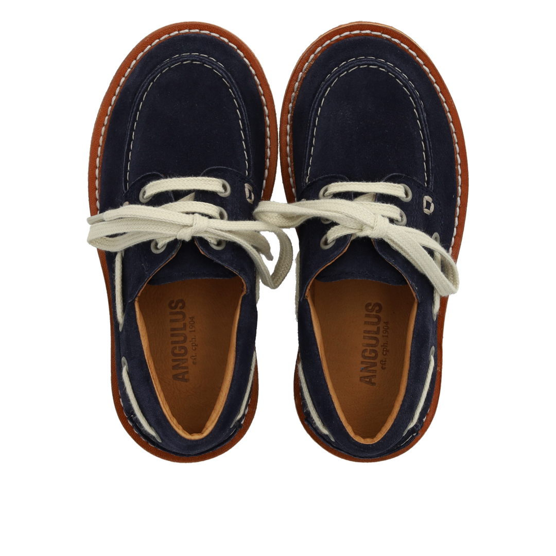 Disse klassiske sko fra Angulus i blødt ruskind er et stilfuldt og komfortabelt valg til både hverdag og festlige lejligheder.