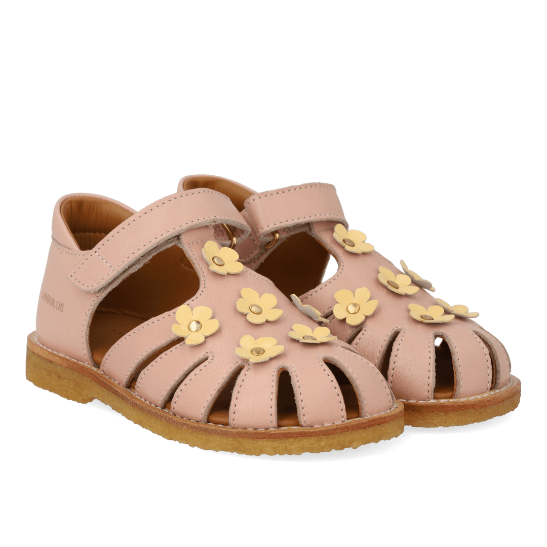 Sandalerne kommer i den bløde nuance Rosebud og er pyntet med små, fine gule blomsterapplikationer, som giver et legende og sommerligt look.