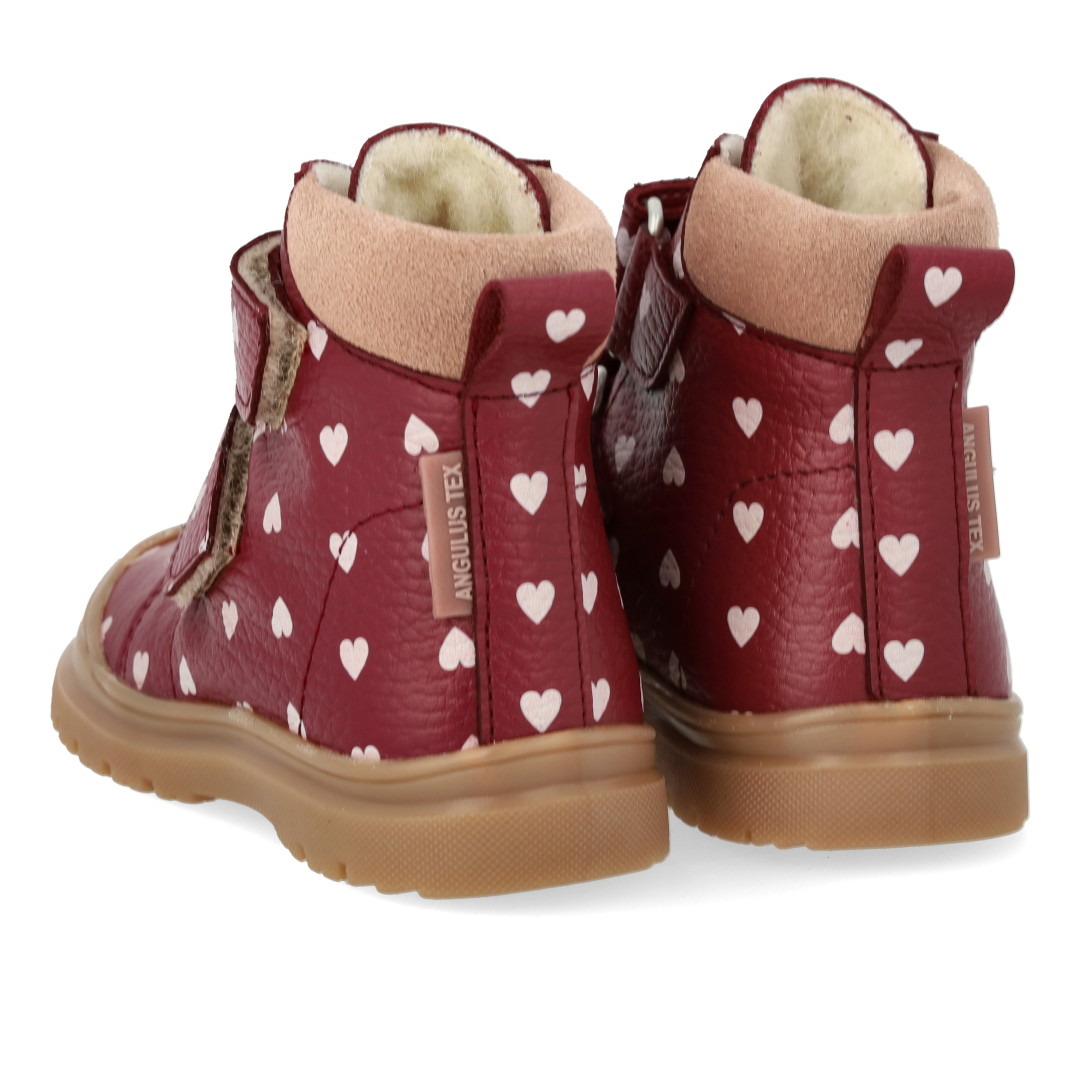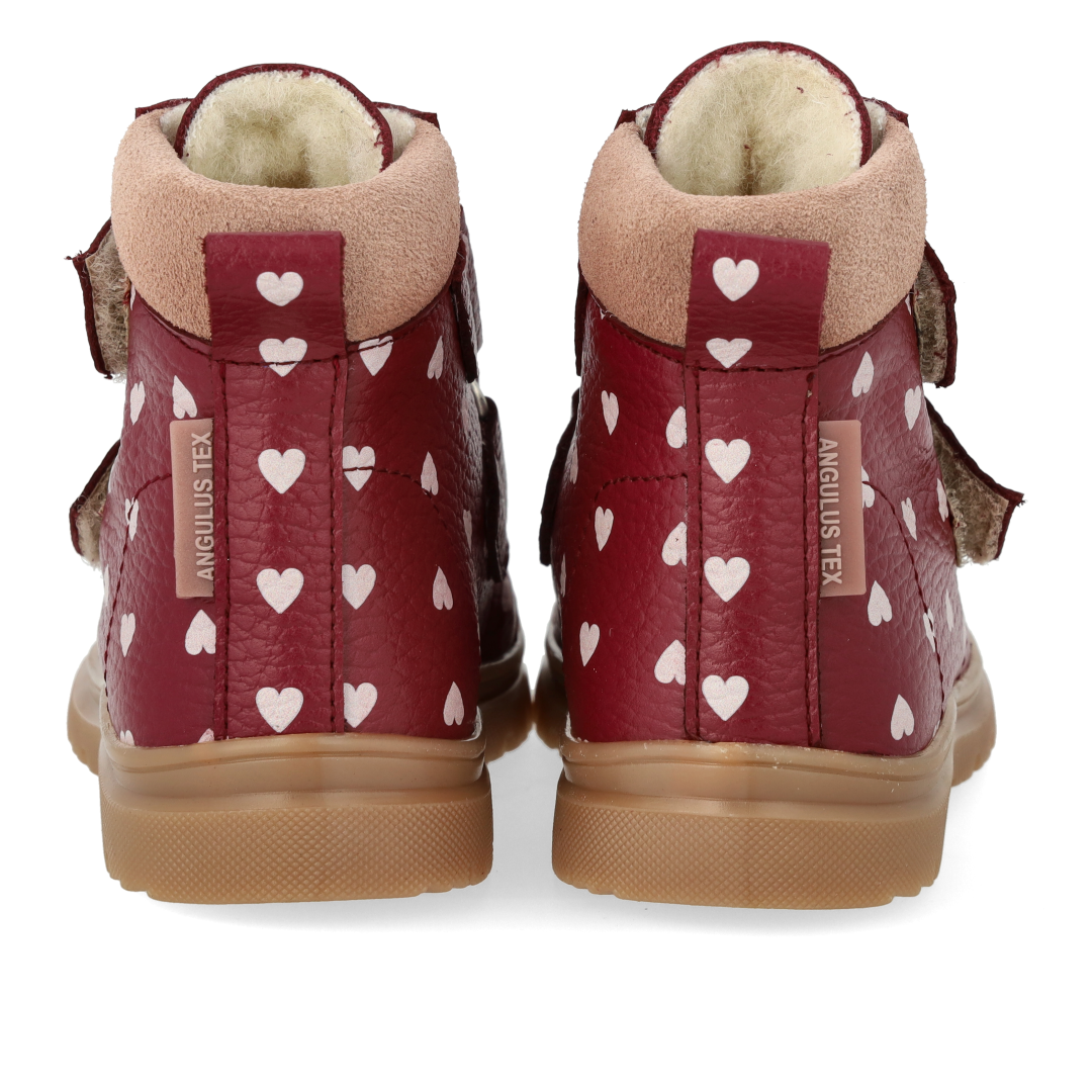 Hold dit barns fødder varme og tørre med disse smukke vinterstøvler fra Angulus, som er designet i en flot rød farve med sødt hjerteprint.