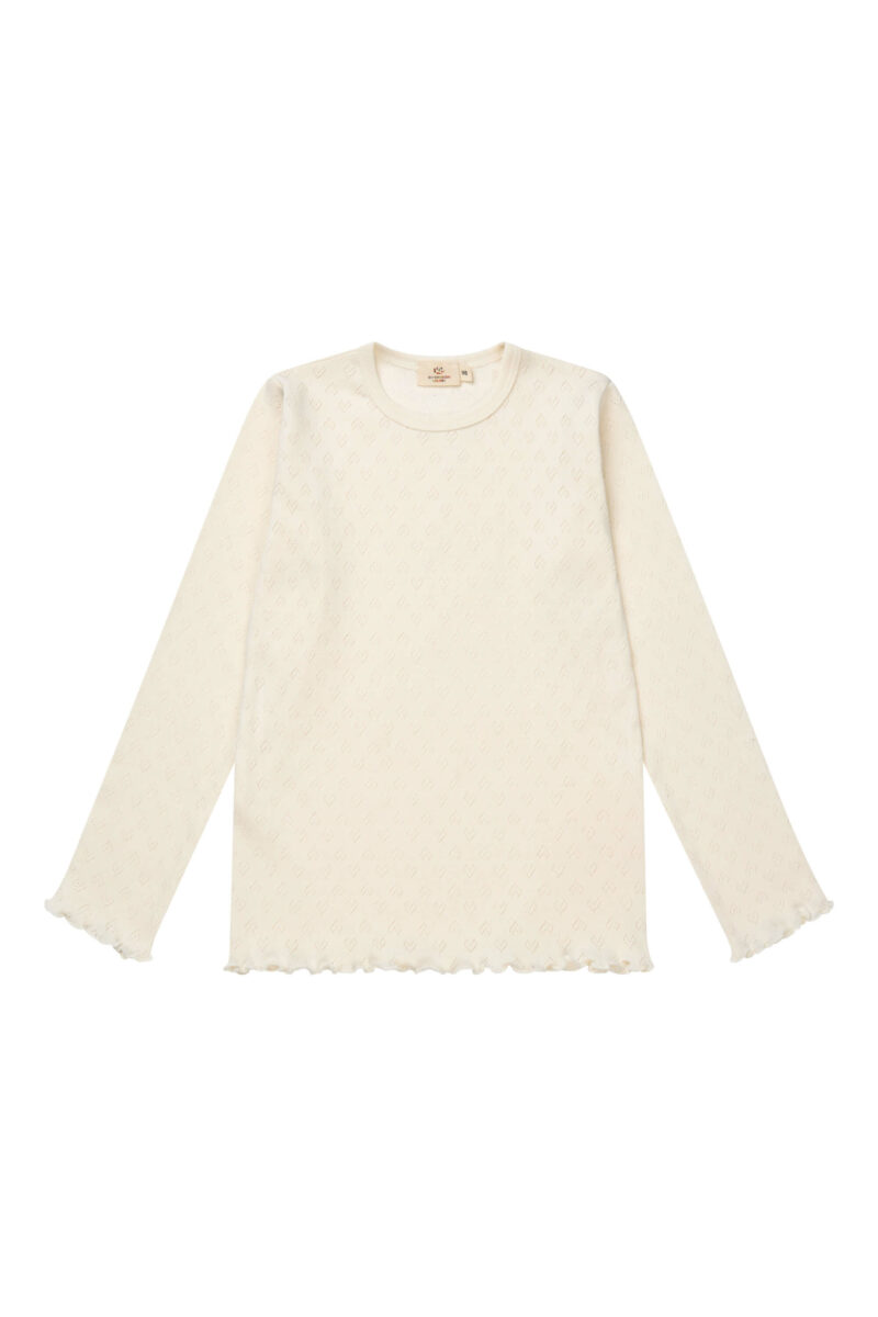 Den lette pointelle-struktur gør blusen behagelig at have på hele dagen.