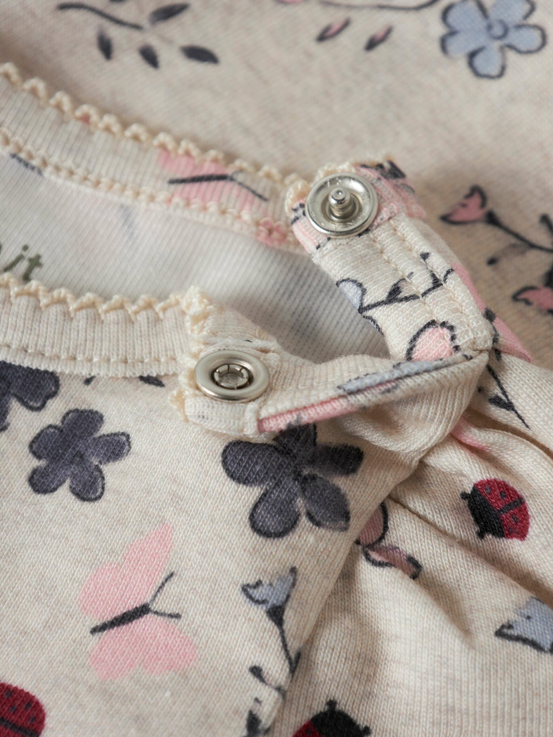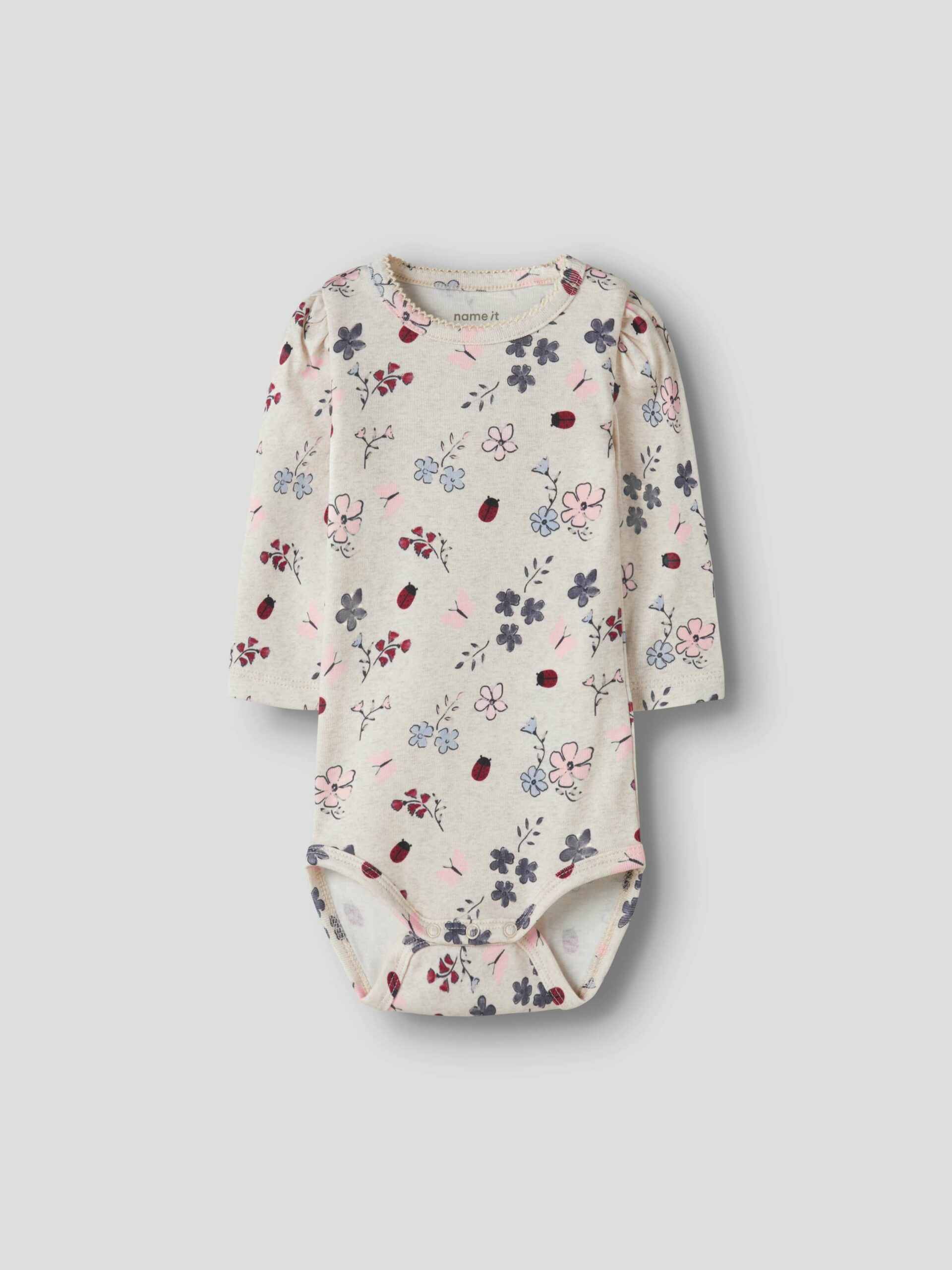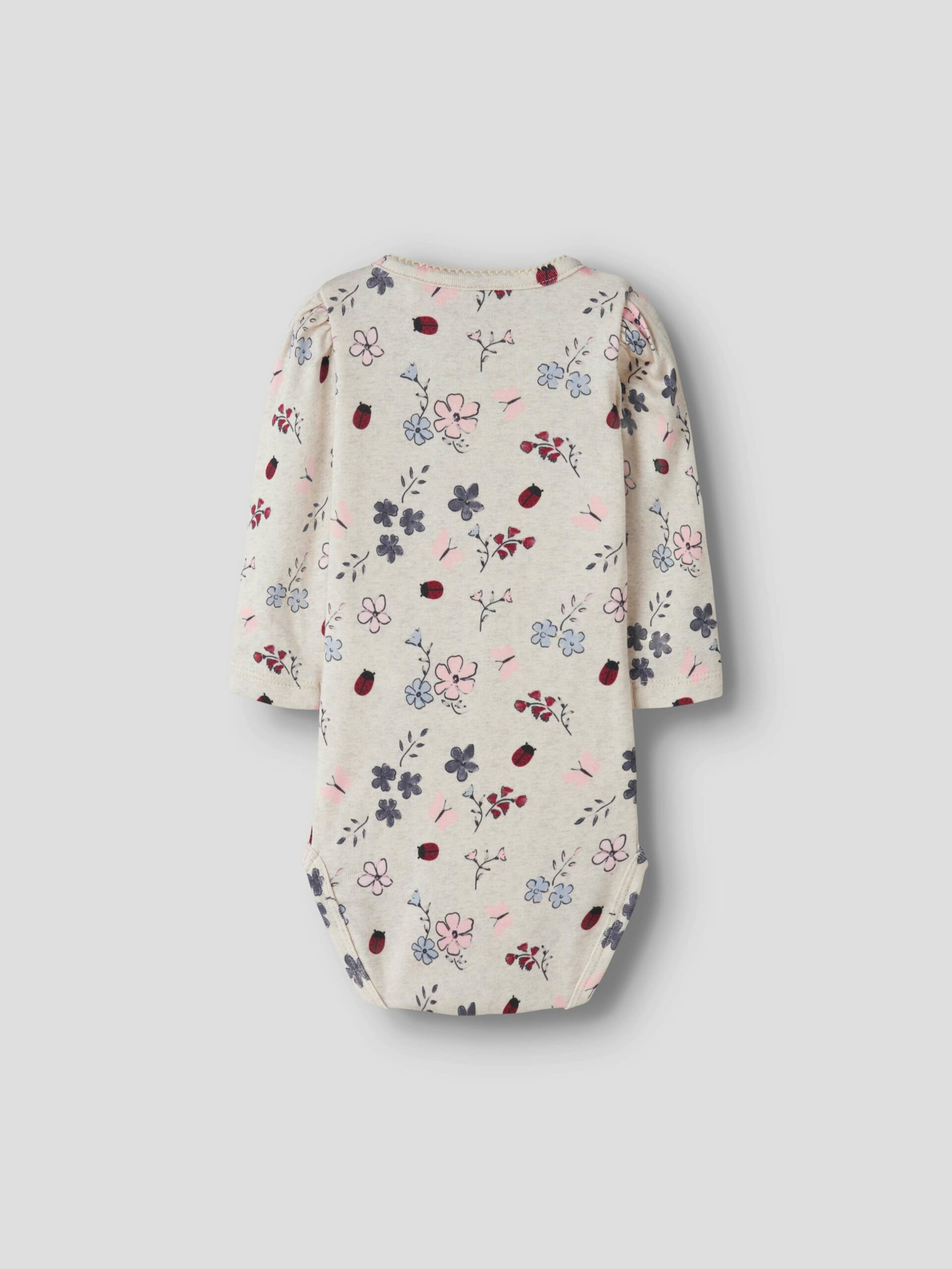 Blød og behagelig bodystocking fra Name It med et fint all-over print af blomster og små mariehøns.
