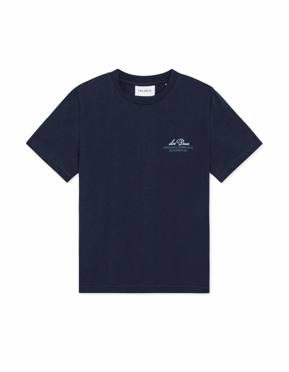 Den kommer i en klassisk mørkeblå farve og har et diskret logo på brystet.