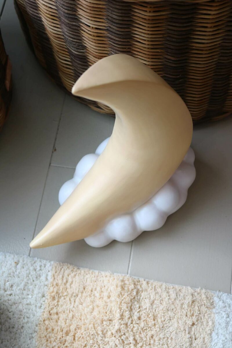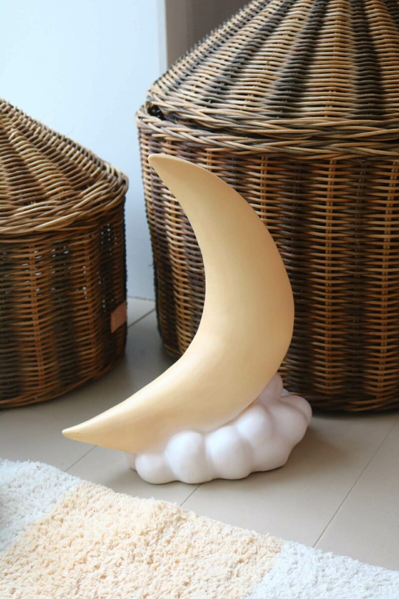 Denne fine månelampe fra Heico forestiller en smuk halvmåne, der hviler på en blød sky.