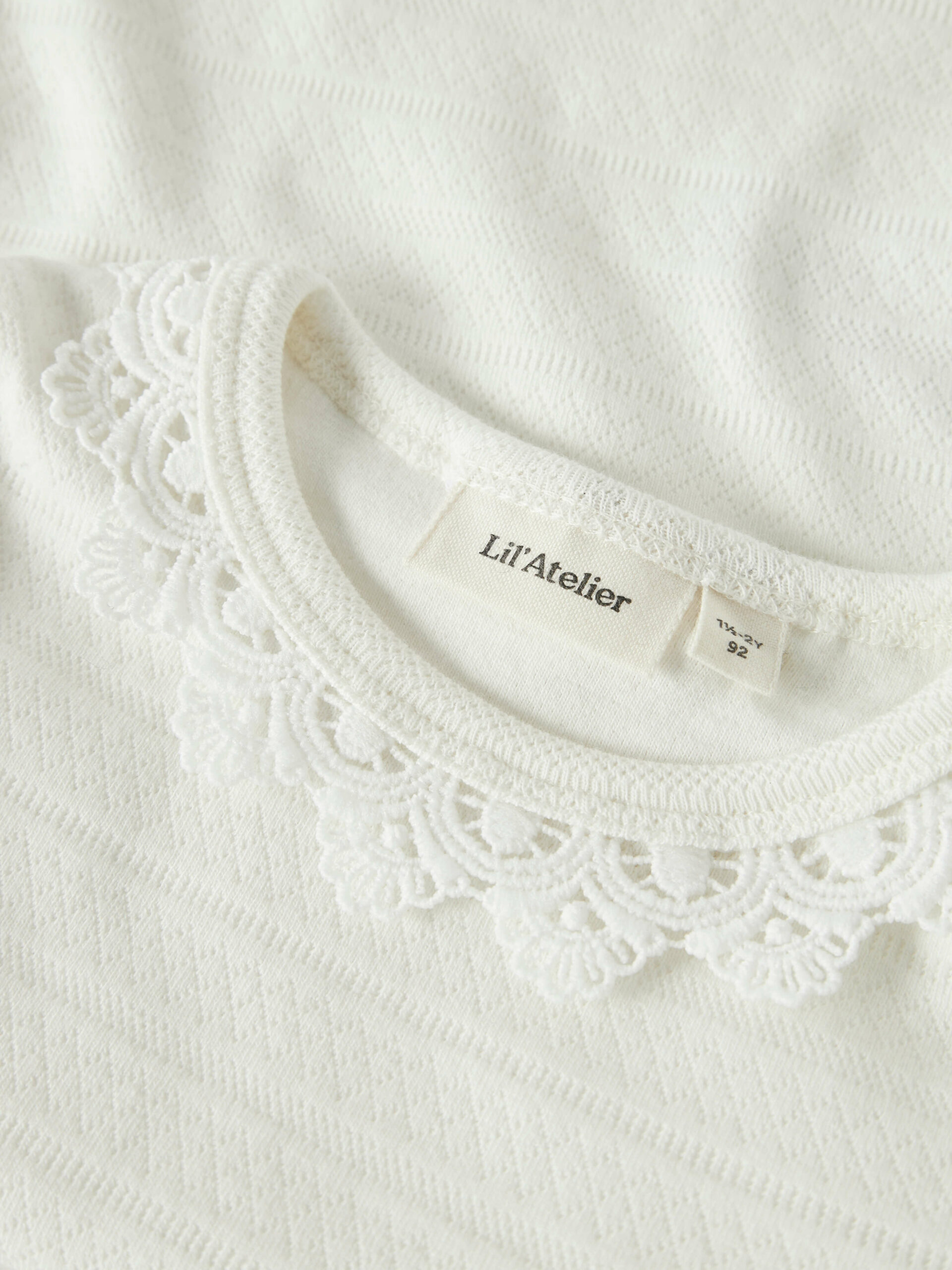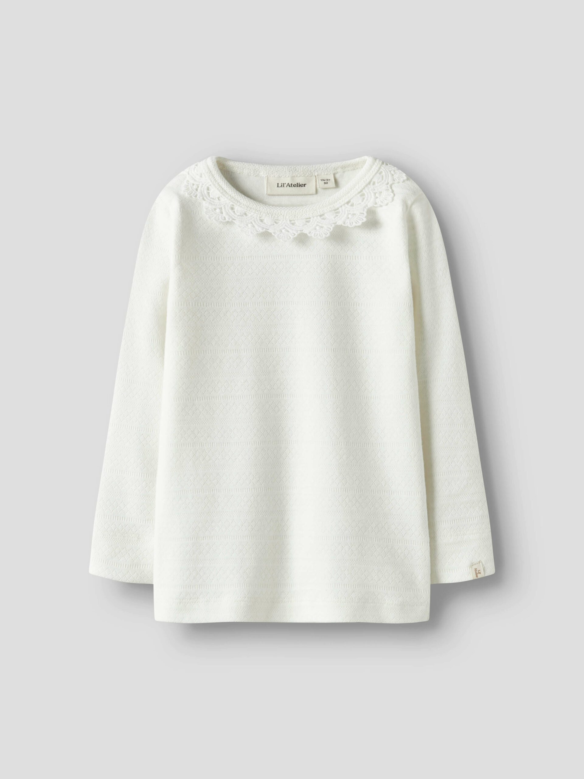 Sødeste bluse med hulmønster og blondekrave fra Lil’ Atelier.