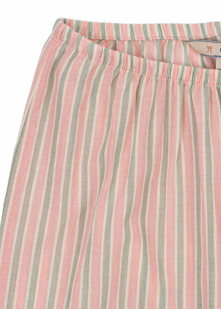 Lilu bukserne fra Konges Sløjd er lette og behagelige bukser i flotte sommerlige farver: Blush Stripe.