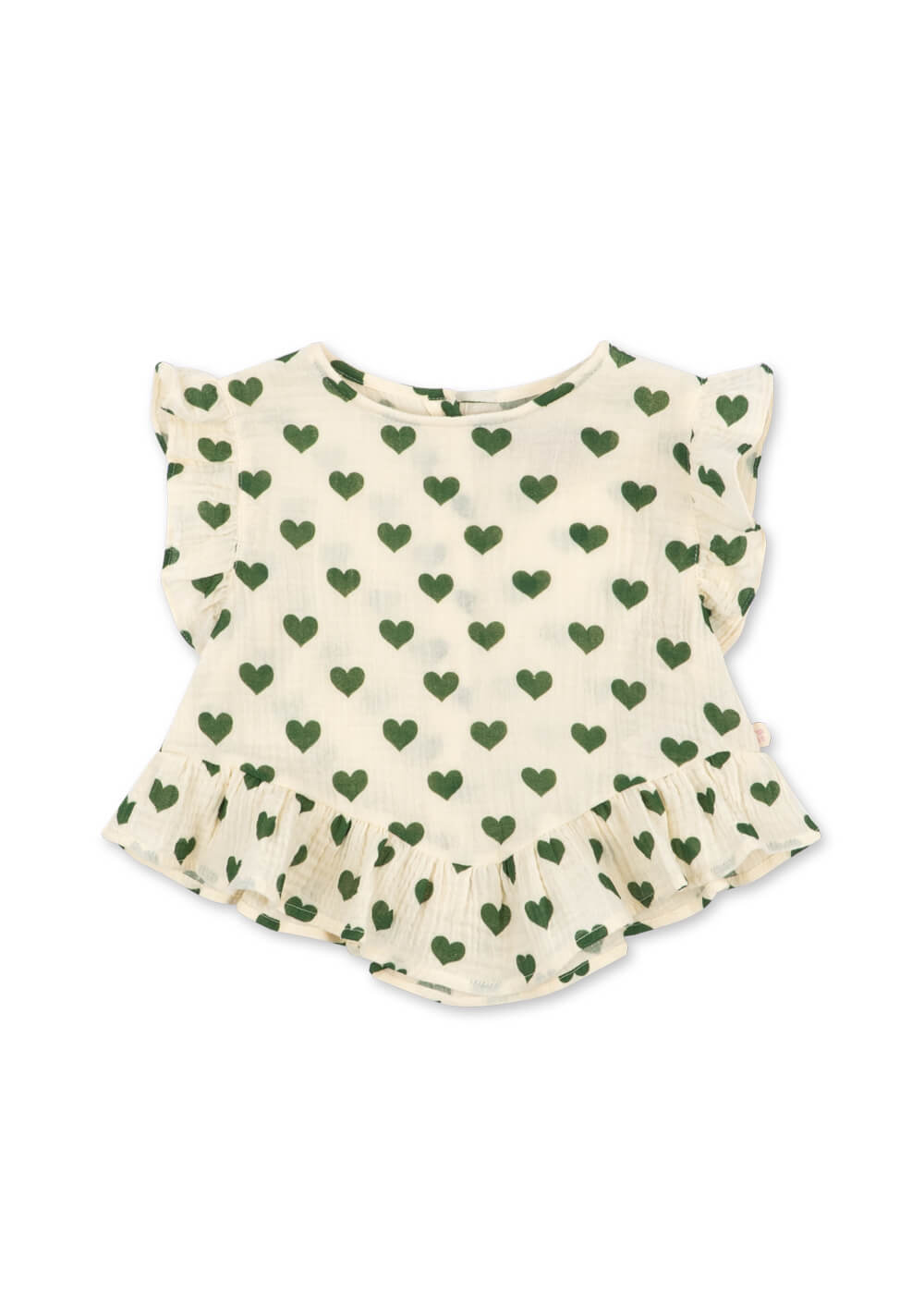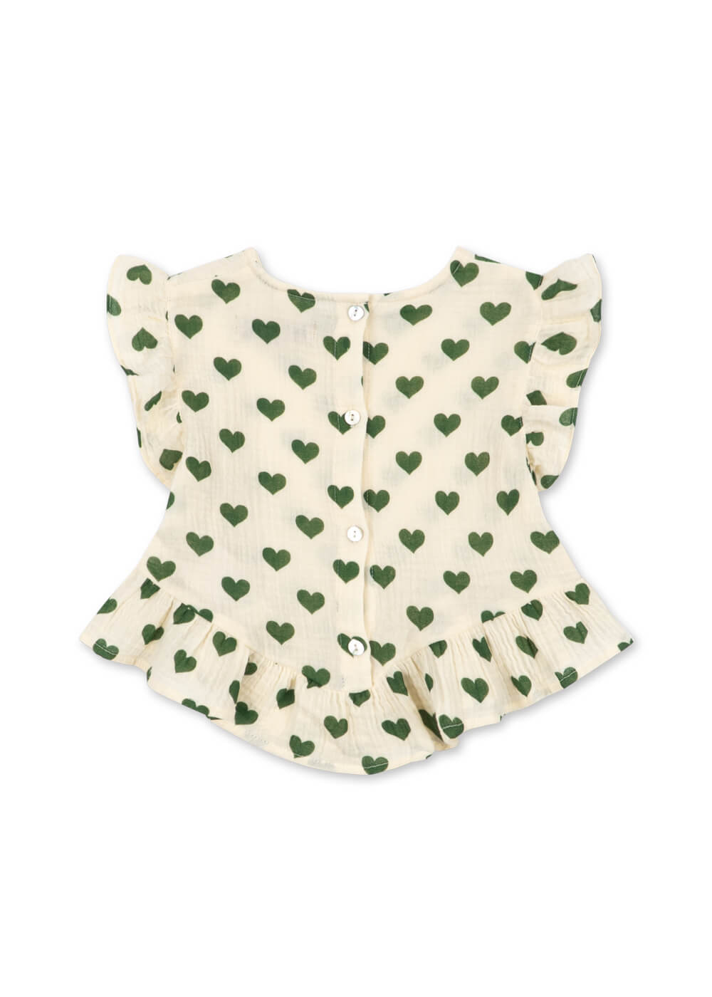 Let og luftig Coco top i blød muslin med fint all-over hjerteprint.