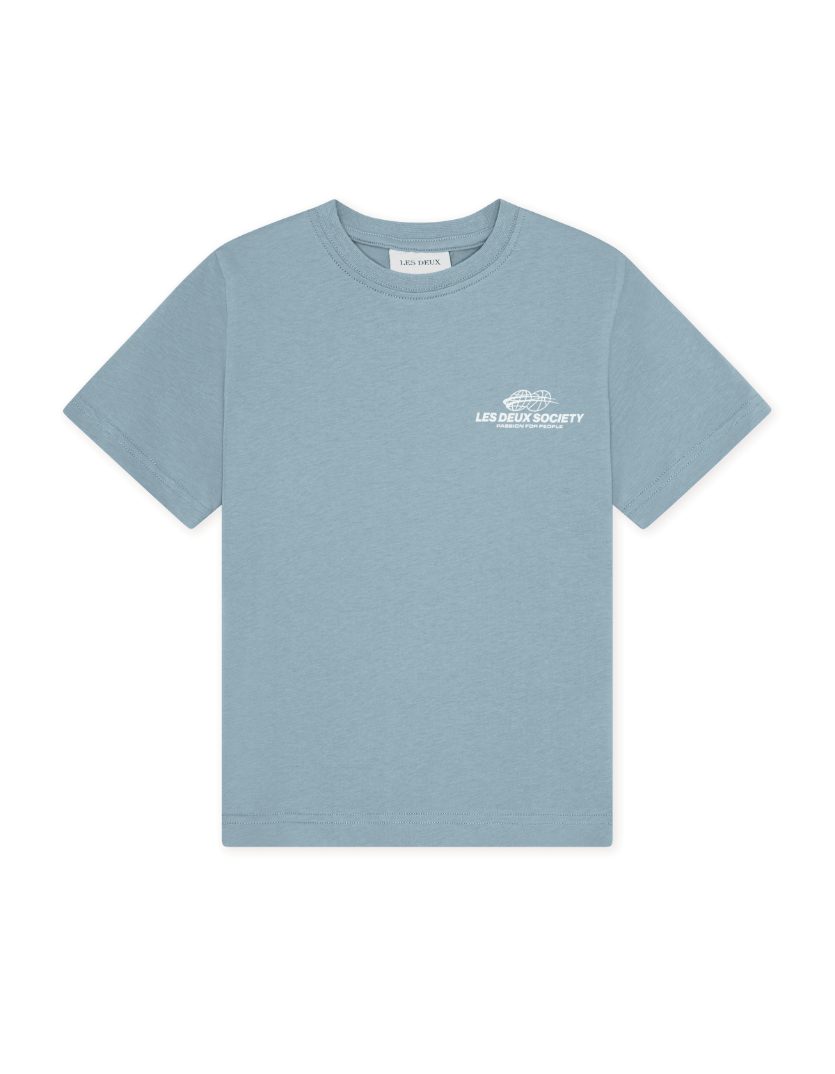 Designet er enkelt foran med et lille logo på brystet, mens ryggen har et større grafisk print med “Les Deux Society”, som giver et cool og karakteristisk udtryk.