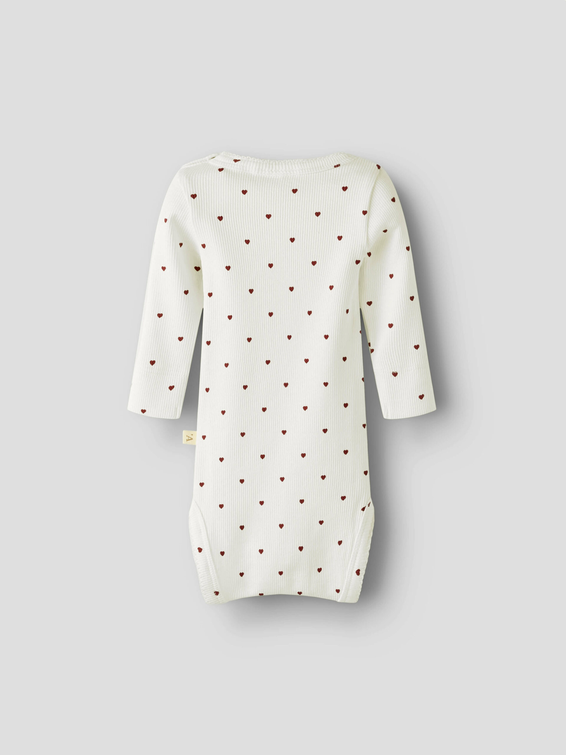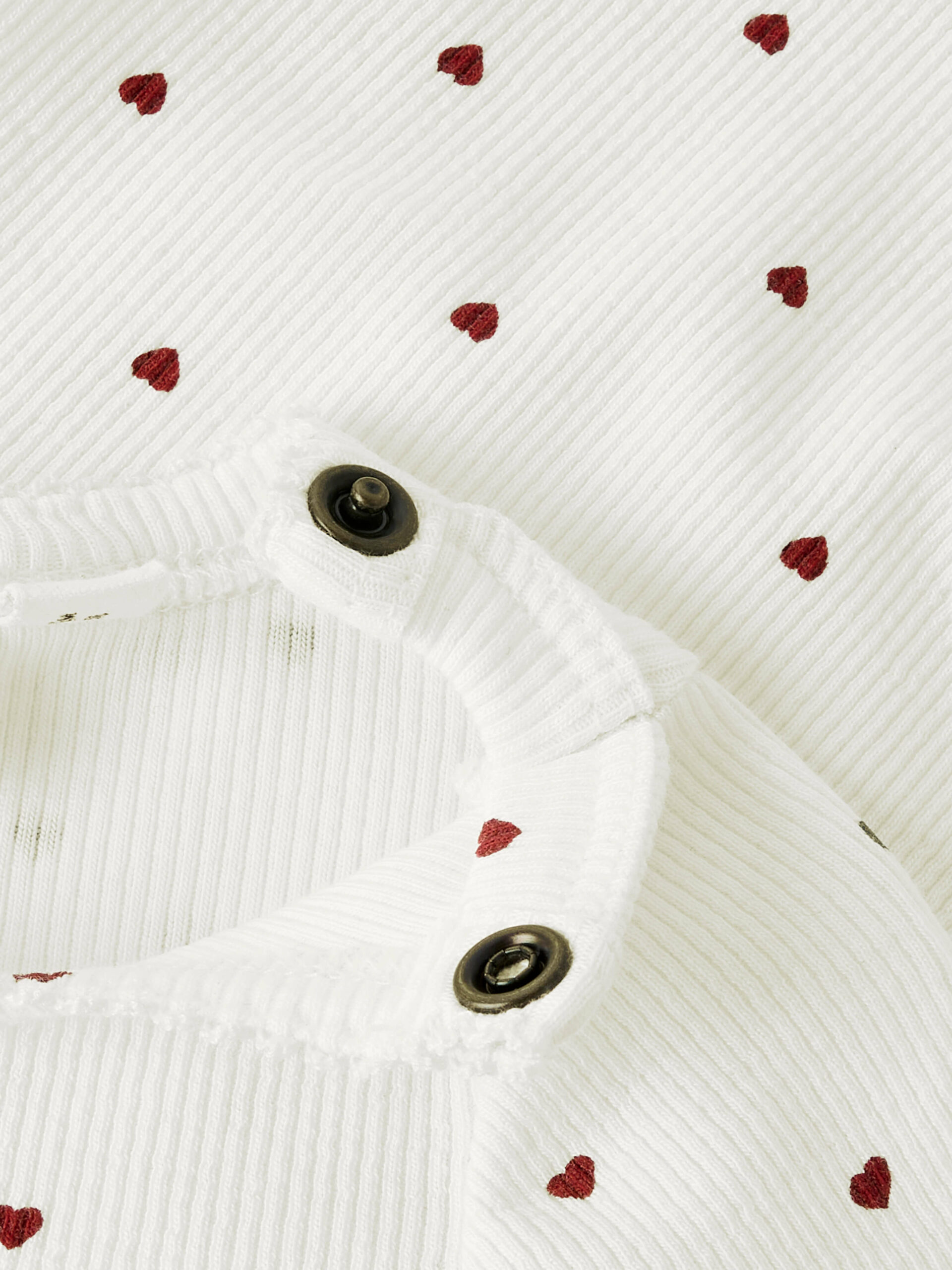 Sød og blød rib body fra Lil’ Atelier, smukt dekoreret med fine mørkerøde hjerter.
