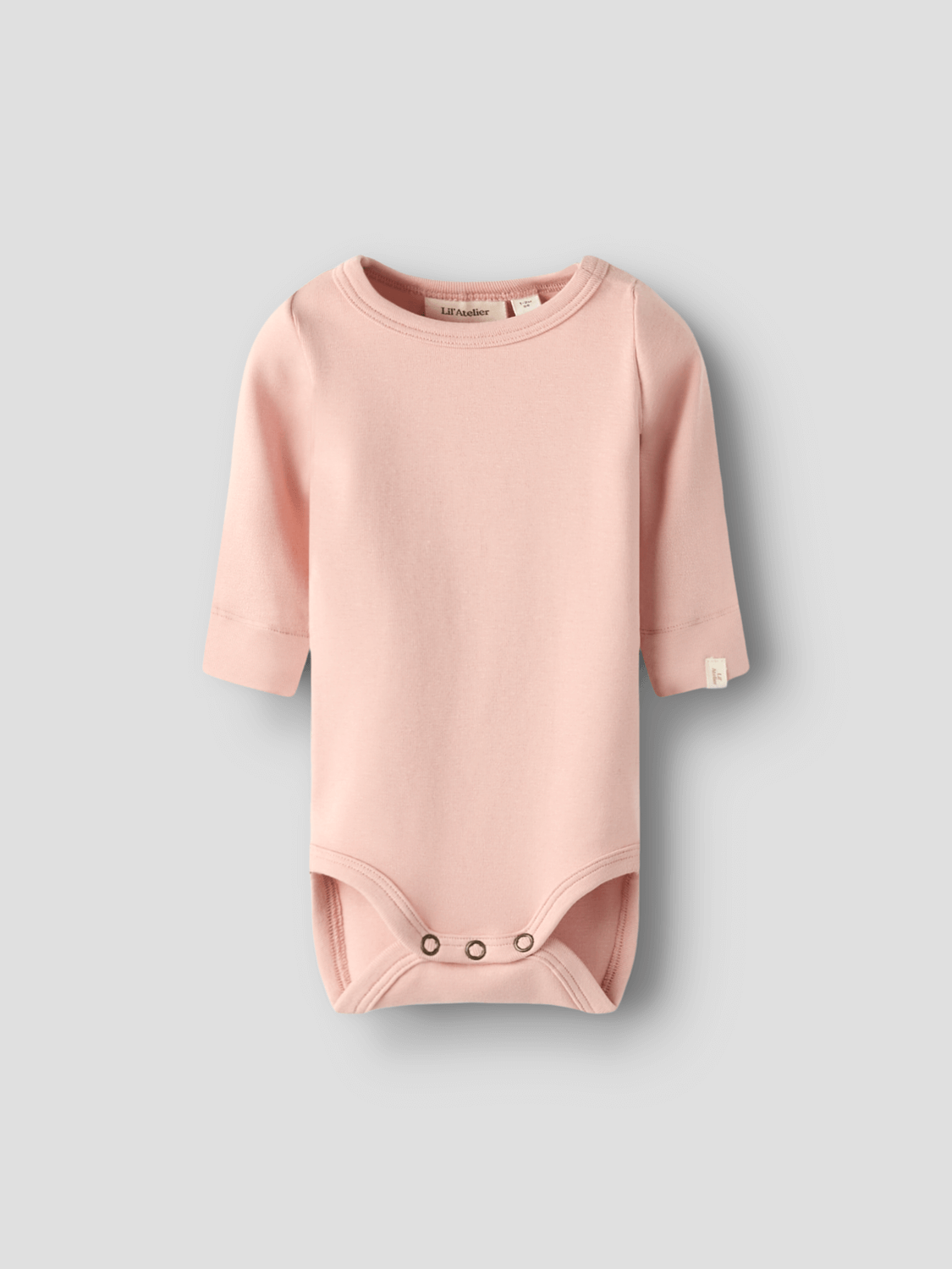 Sød og enkel ensfarvet lyserød body fra Lil’ Atelier i blød og strækbar kvalitet.