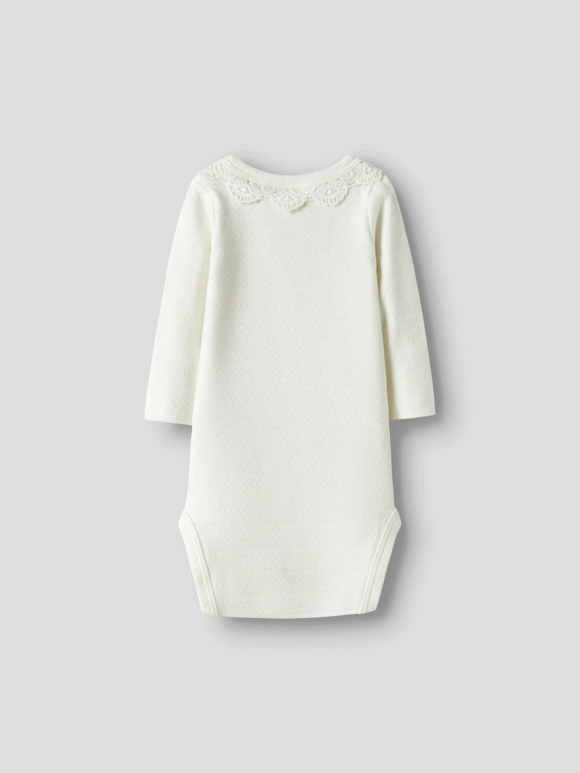 Bodyen har et fint hulmønster og en sød blondekrave, som gør den perfekt til de fleste styles.