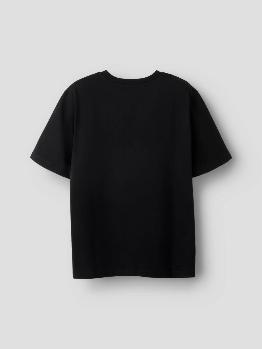 Med sin klassiske pasform og tidløse sorte farve er den nem at style – perfekt til både jeans, shorts eller under en åben skjorte for et cool lag-på-lag look.