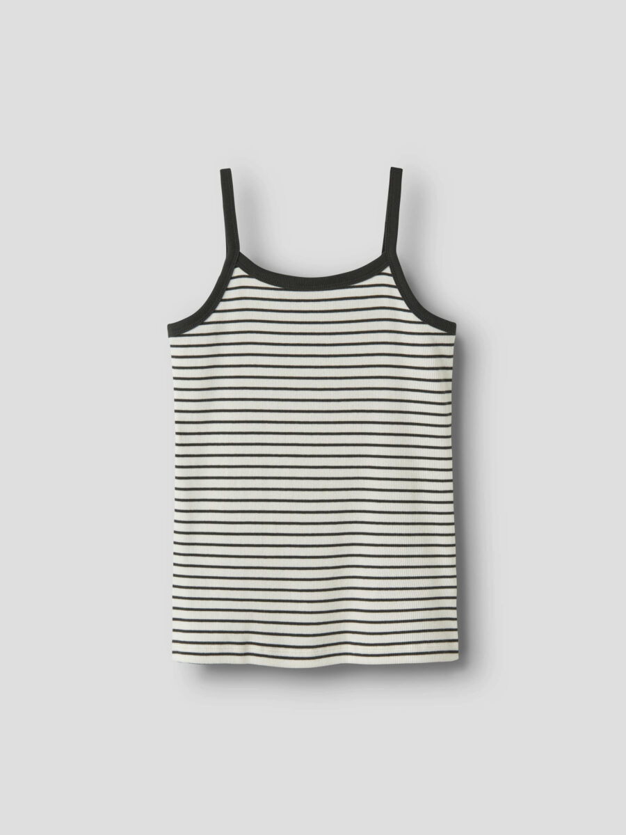 Den stilrene Hinaja stroptop fra LMTD i farven White Alyssum Pirate Black er en perfekt basisfavorit med et cool twist.