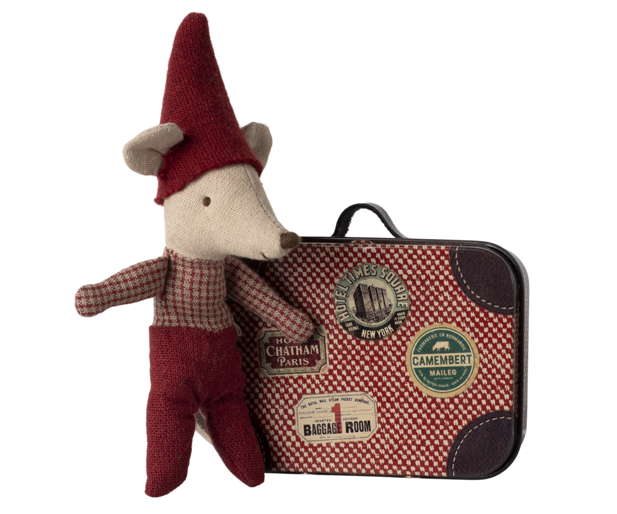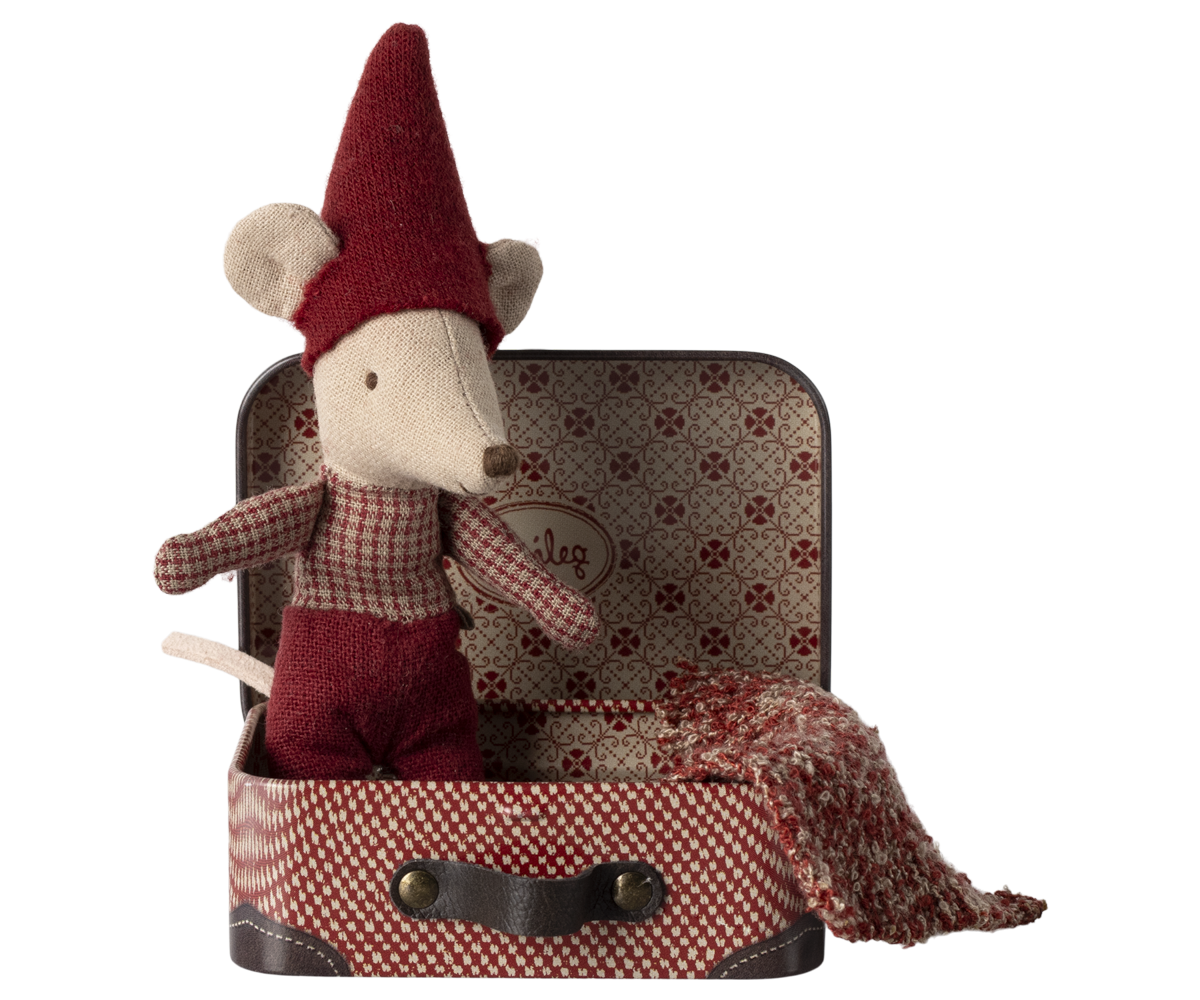 Sød lille babymus i metalkuffert.