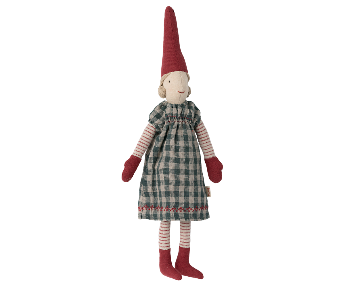 Flot nissepige fra Maileg med en fin grøn ternet kjole på.