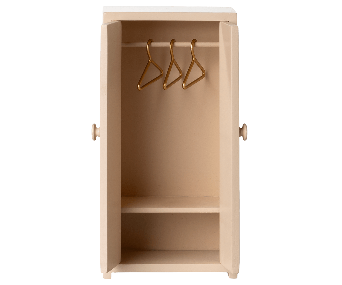 Skabet passer i størrelse til Maileg-mus og giver legen et hyggeligt og realistisk præg.