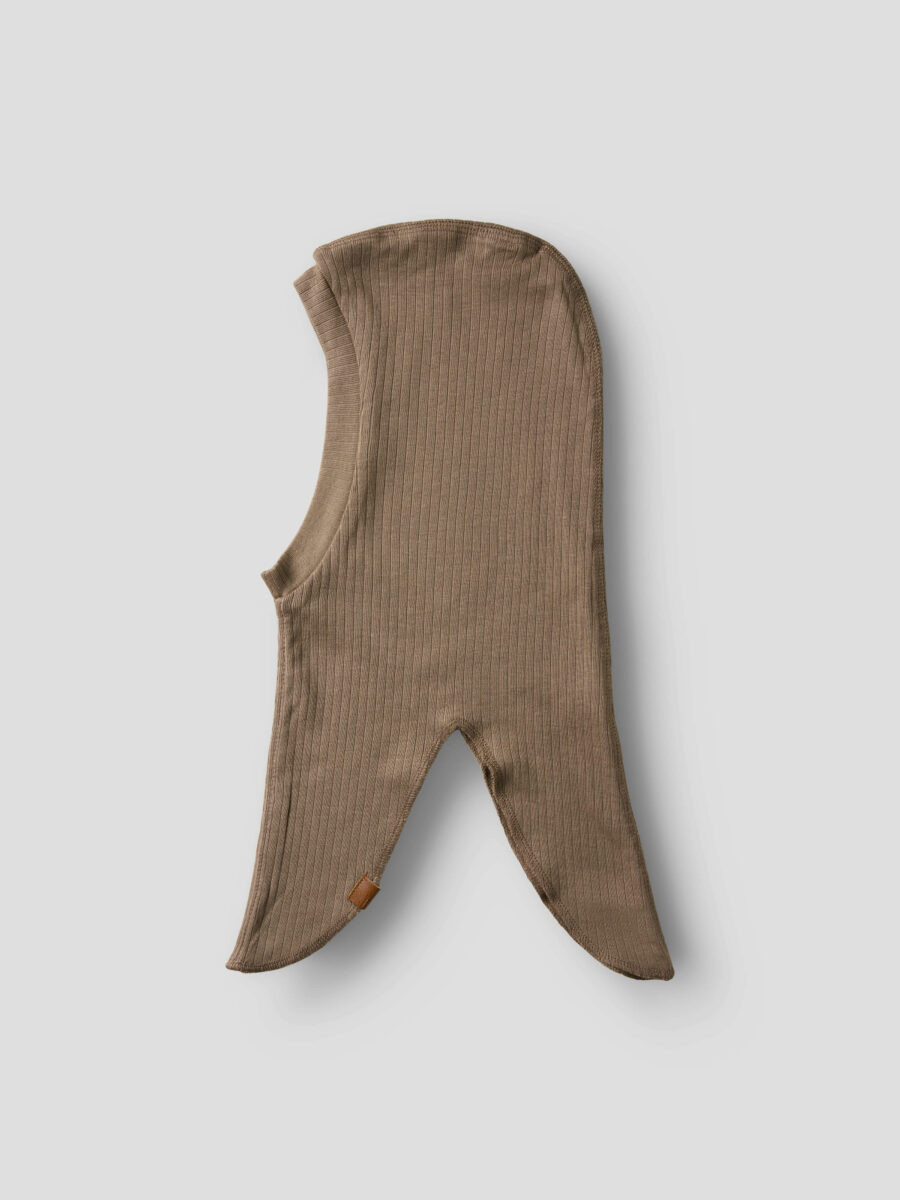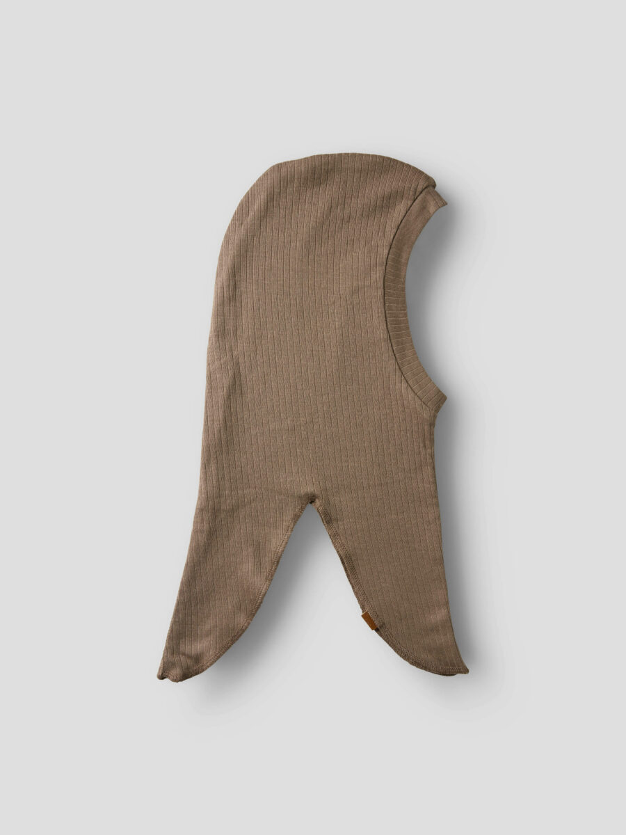 Perfekt balaclava til foråret er denne 2-lags hue fra Name It i farven Fossil.