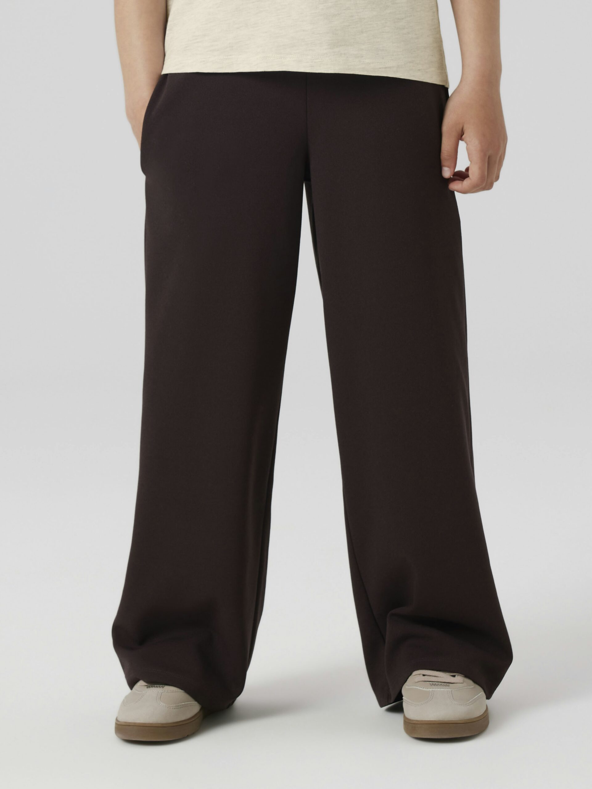 Smarte mørkebrune bukser med justerbar elastik i taljen.