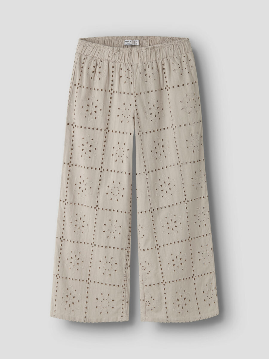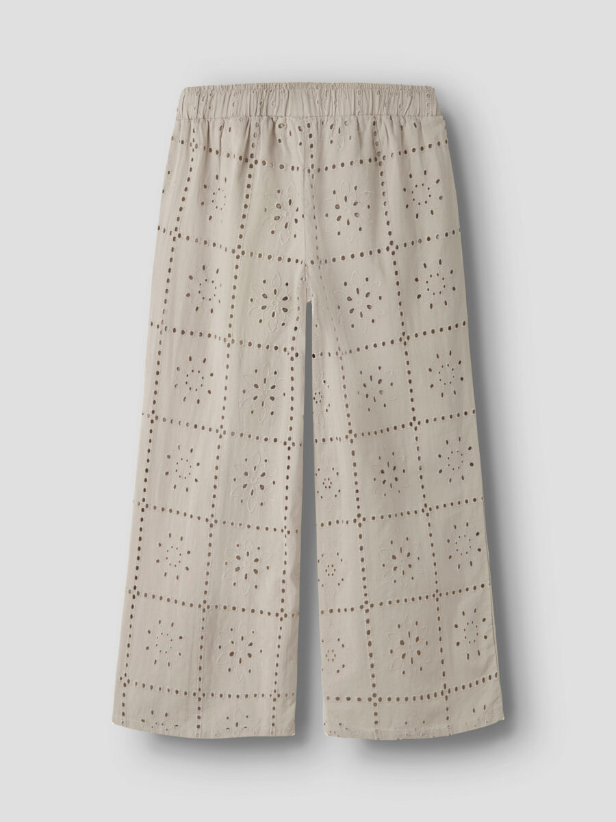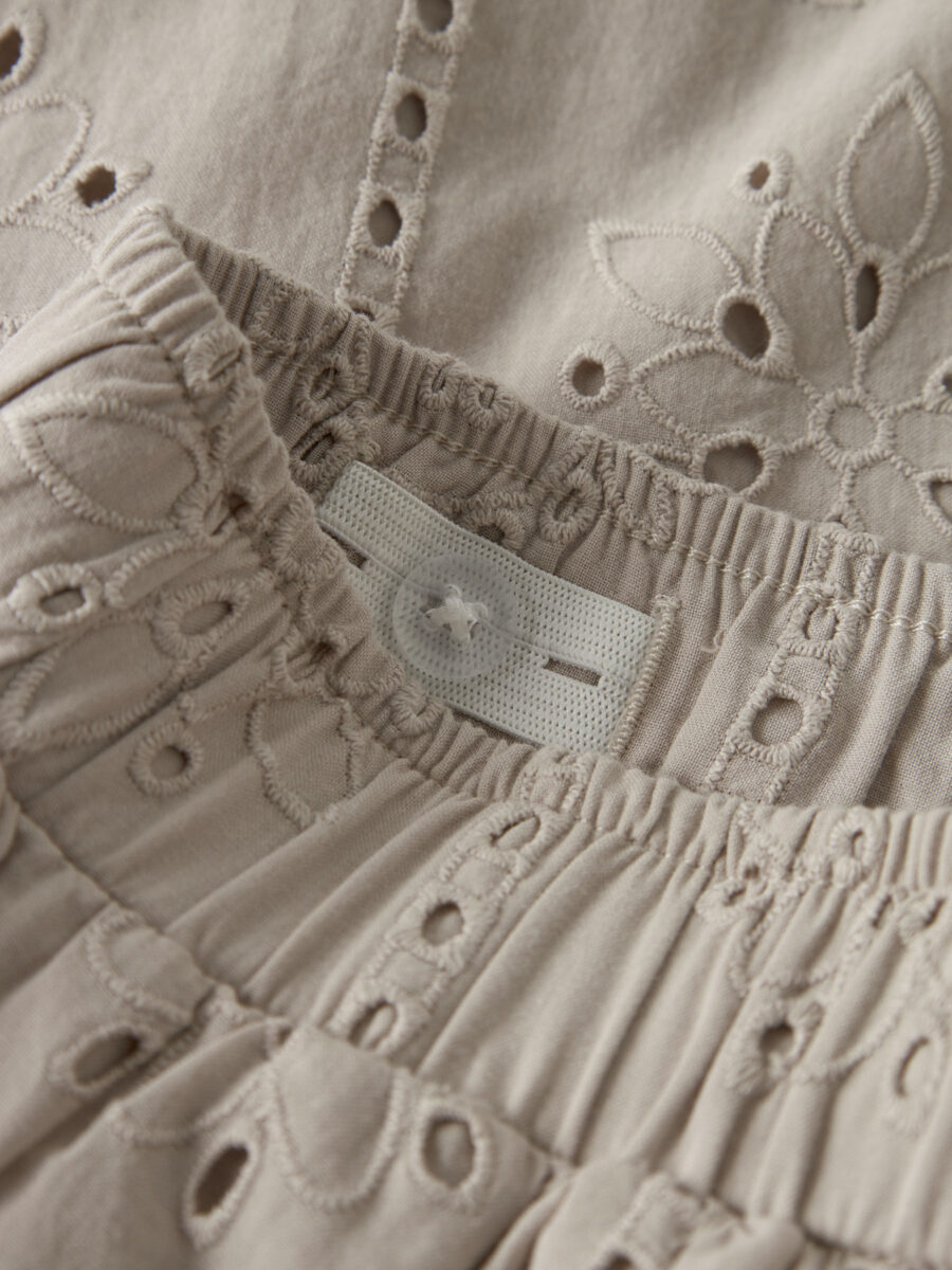 Let og elegant buks fra Nem It med fine broderidetaljer. Det luftige loose fit giver masser af bevægelsesfrihed, mens den elastiske talje sikrer en god og fleksibel pasform. De smukke broderi- og hulmønstrede detaljer tilfører et feminint og eksklusivt udtryk.