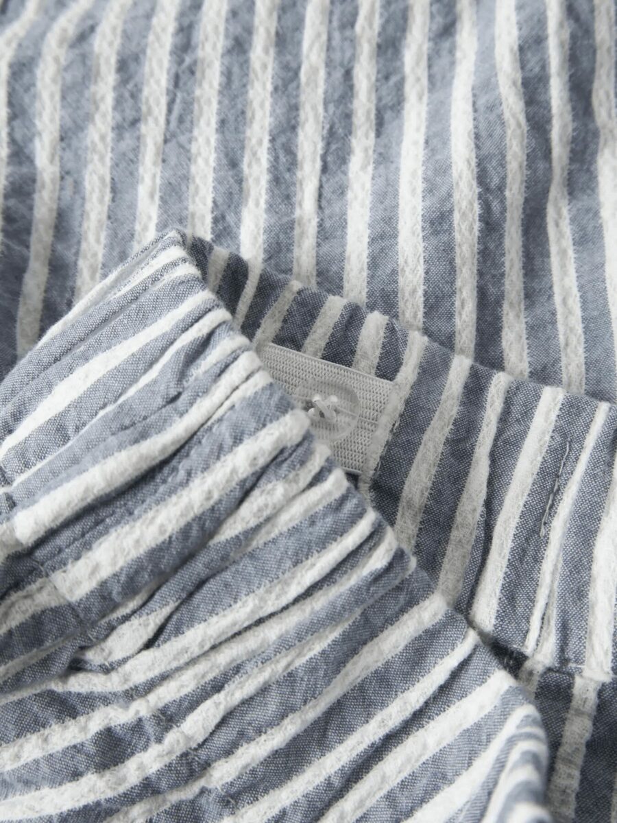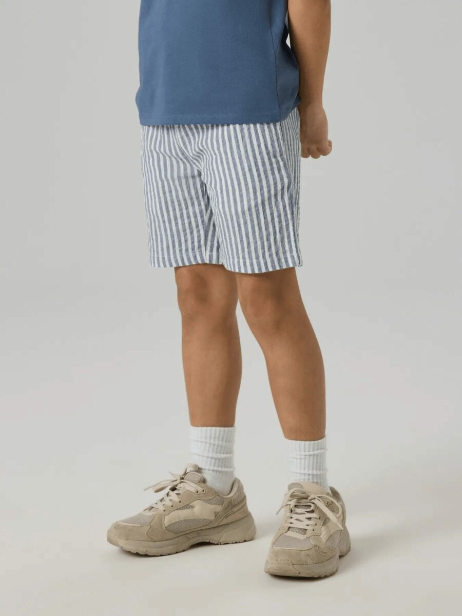 Shortsene har et cool stribet design i farverne Vintage Indigo og Cloud Dancer, som giver et friskt og afslappet look.