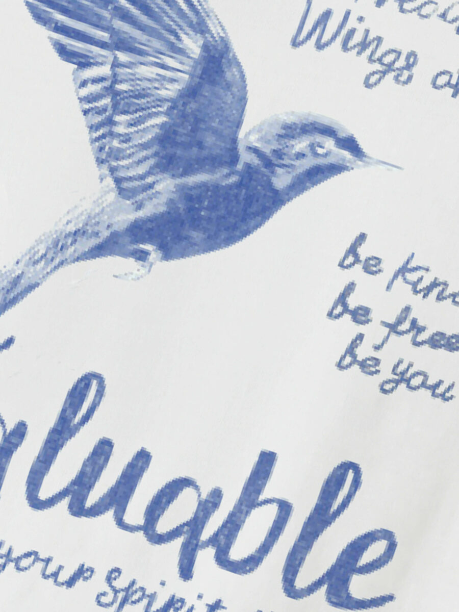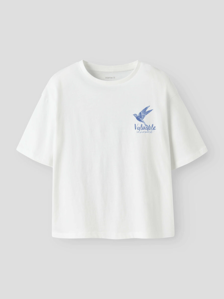 T-shirten er designet i farven Bright White og har et flot fugleprint med inspirerende tekst både foran og bagpå.