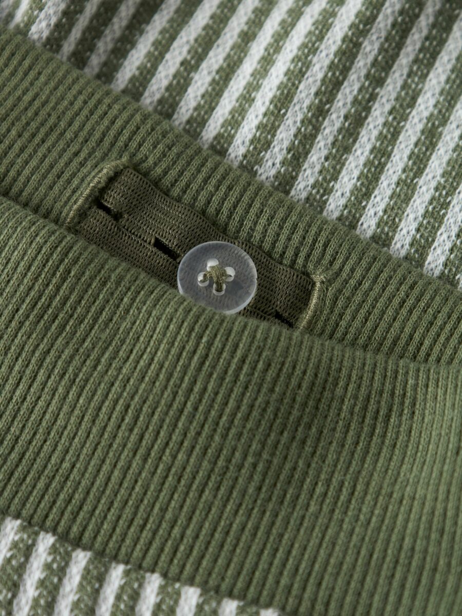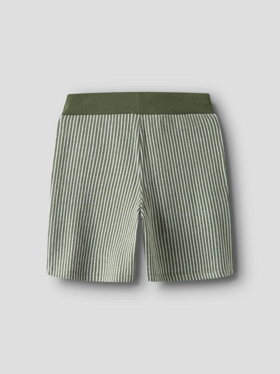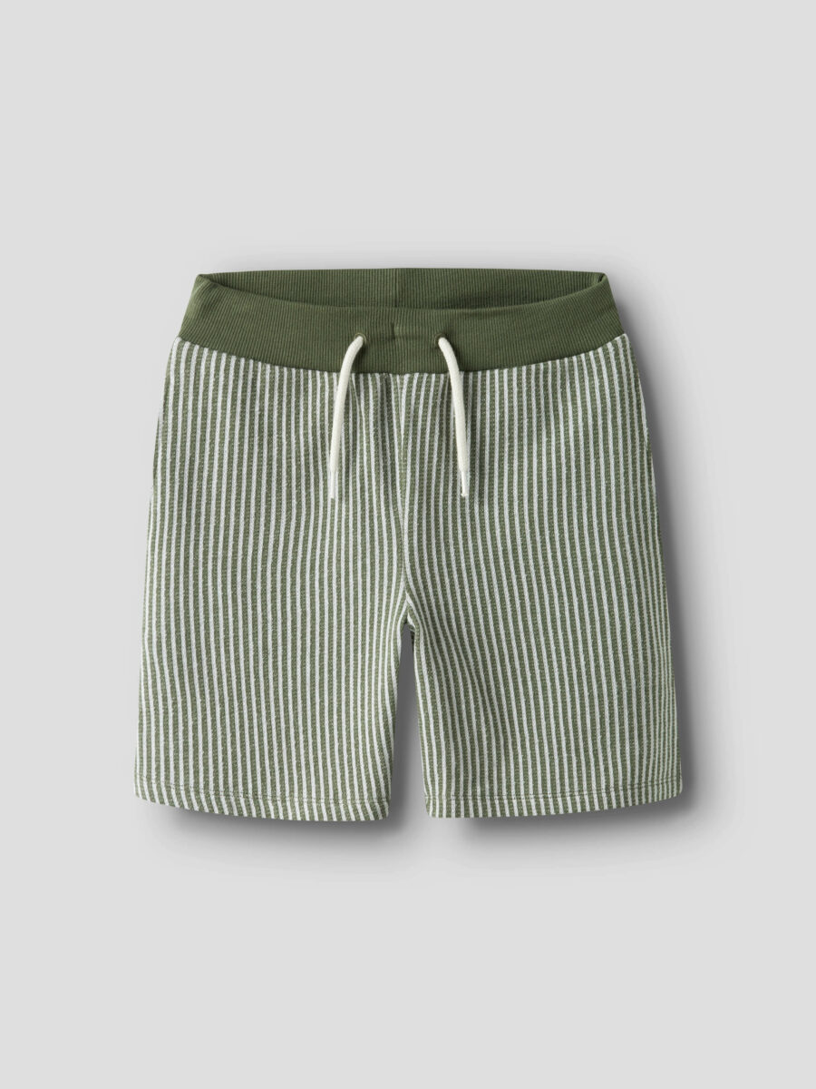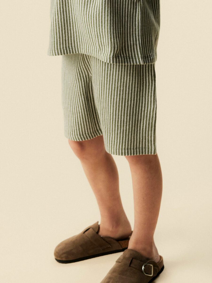 Friske og sommerlige shorts fra Name It i en flot grøn stribet farve. Shortsene har en elastisk talje med snøre, så de nemt kan tilpasses barnets behov. Det grønne stribede design giver et moderne og afslappet look, som passer perfekt til sæsonens outfits.