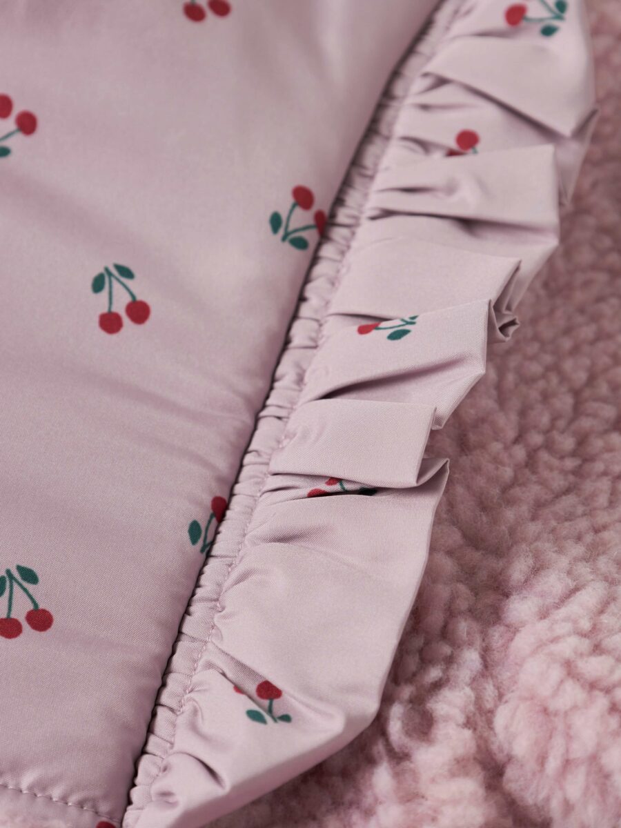 Sød og blød teddy jakke i en smuk lilla nuance med fint all-over cherry print på overdelen.