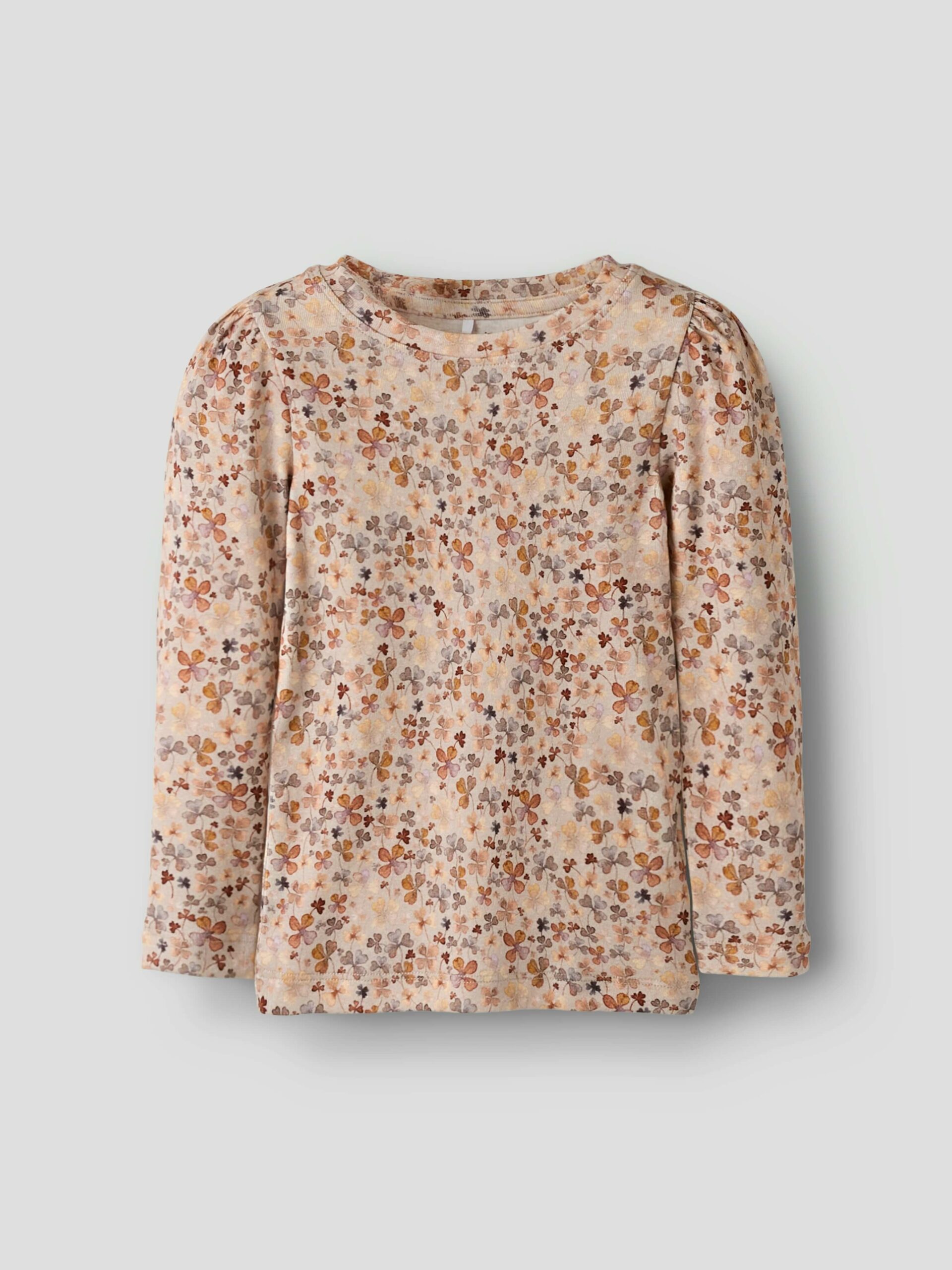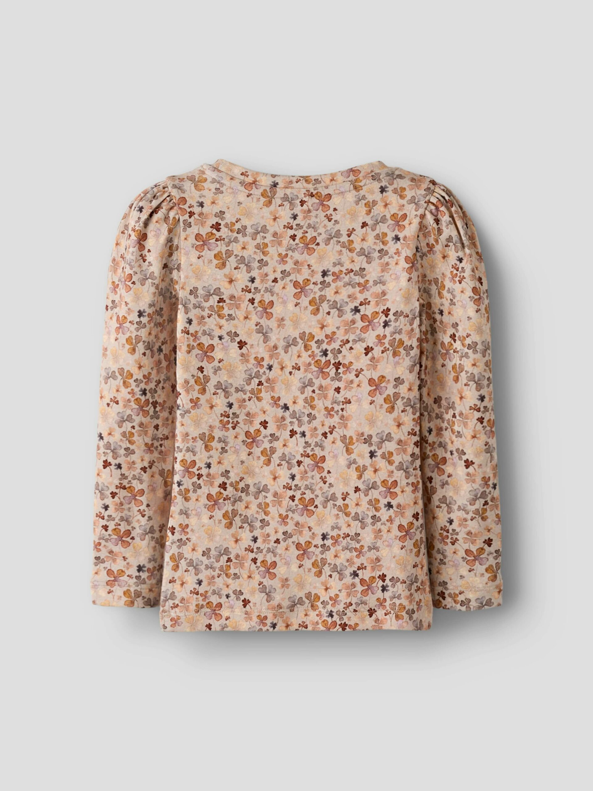 Blusen har et smukt all-over blomsterprint i varme, afdæmpede nuancer på en lys bund, som giver et feminint og tidløst udtryk.