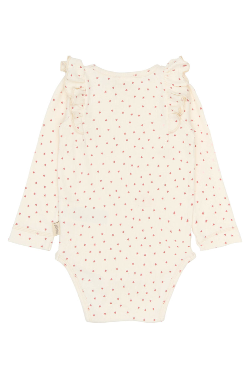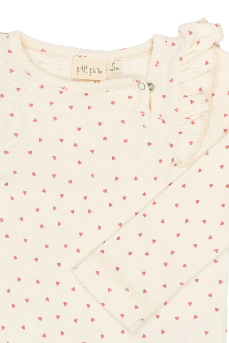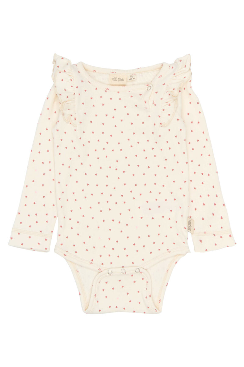 Smuk body fra Petit Piao i en fin hvid nuance med små rosa hjerter all over.