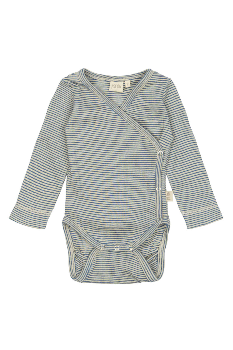 Sød stribet slå-om-body fra Petit Piao til de allermindste drenge.