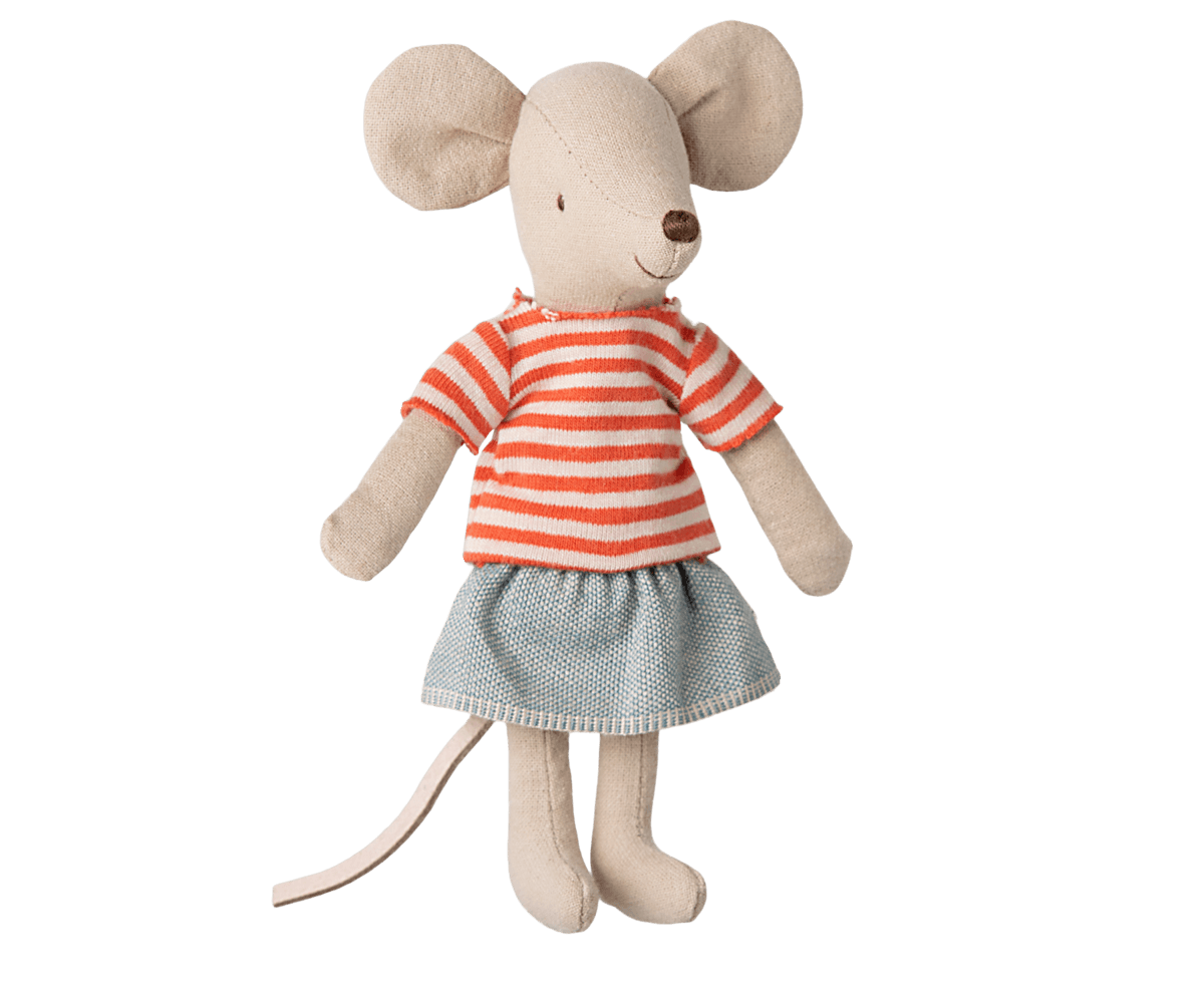 Den bløde kvalitet og de fine detaljer gør storesøster musen til en elskelig legekammerat, som passer perfekt ind i Maileg-universet.