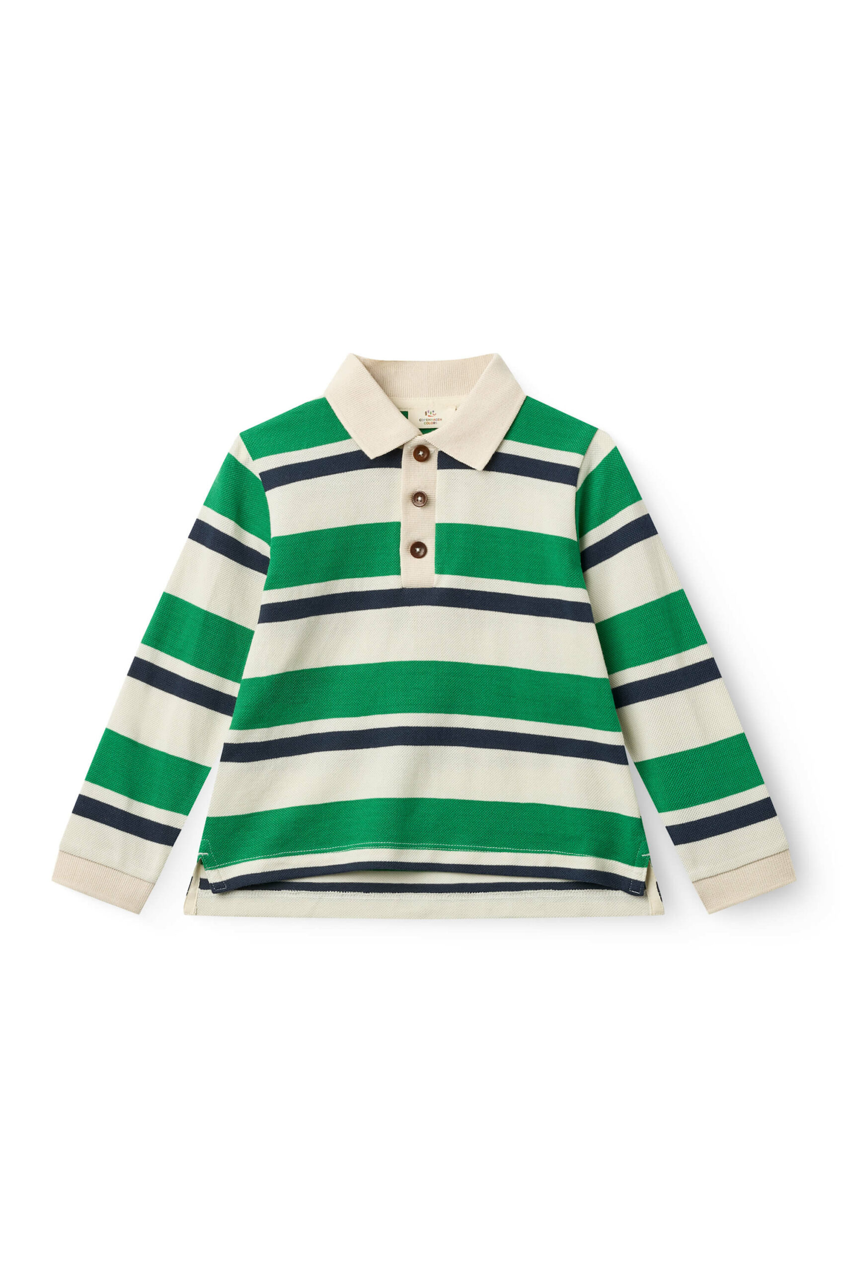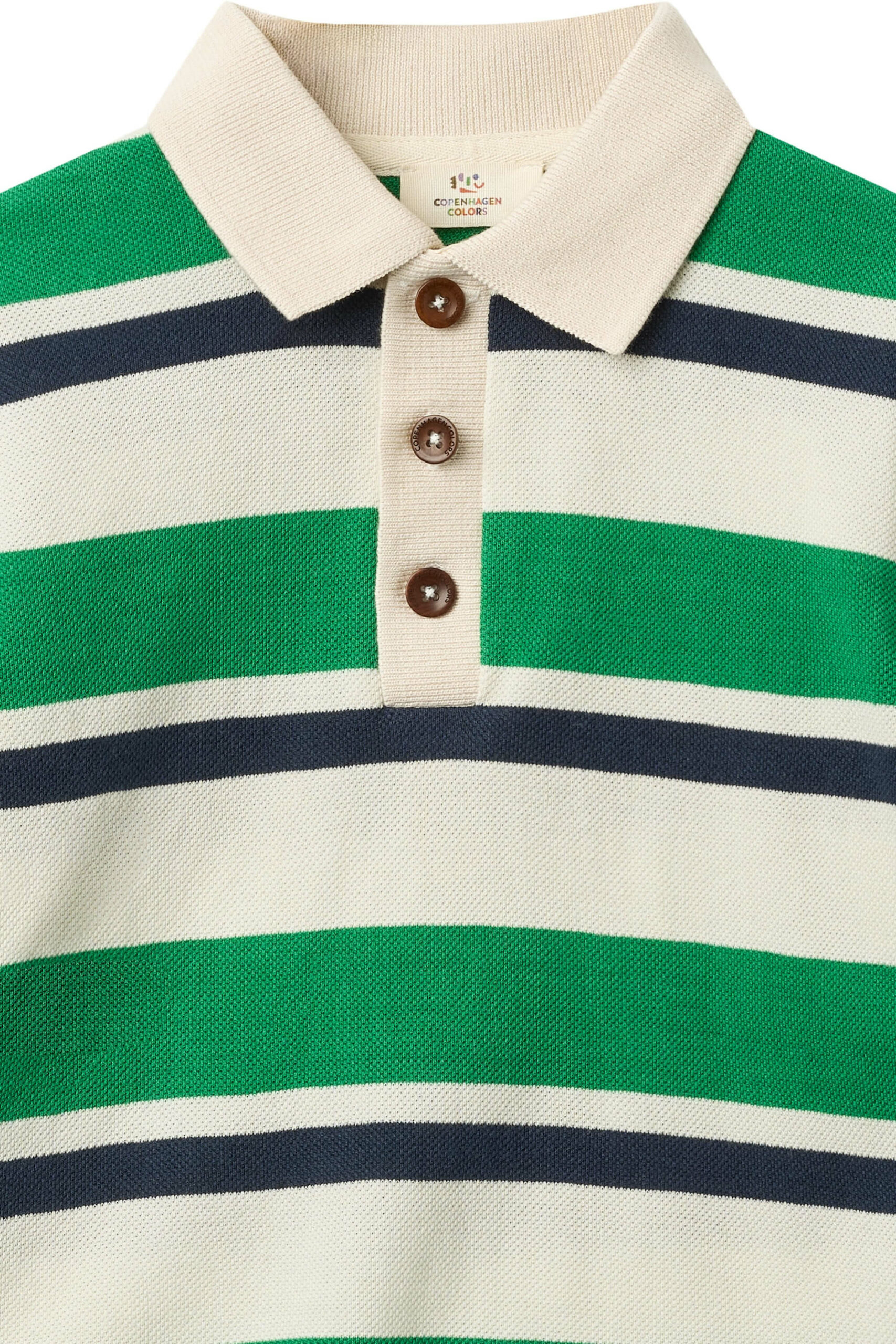 Klassisk og stilfuld langærmet polo fra Copenhagen Colors i en frisk Sharp Green Comb. farvekombination.