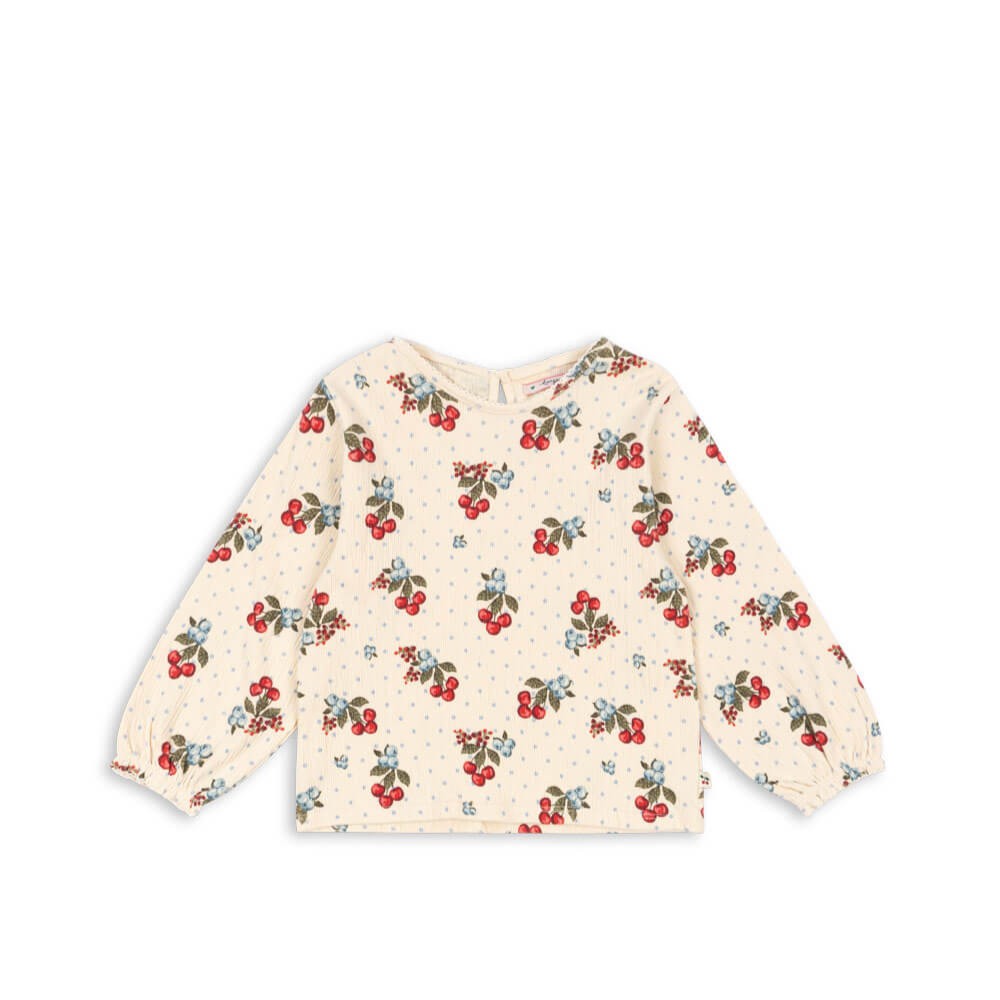 Den skønne og lækre Chleo bluse fra Konges Sløjd har et smukt bærprint kaldet Marmelatta.