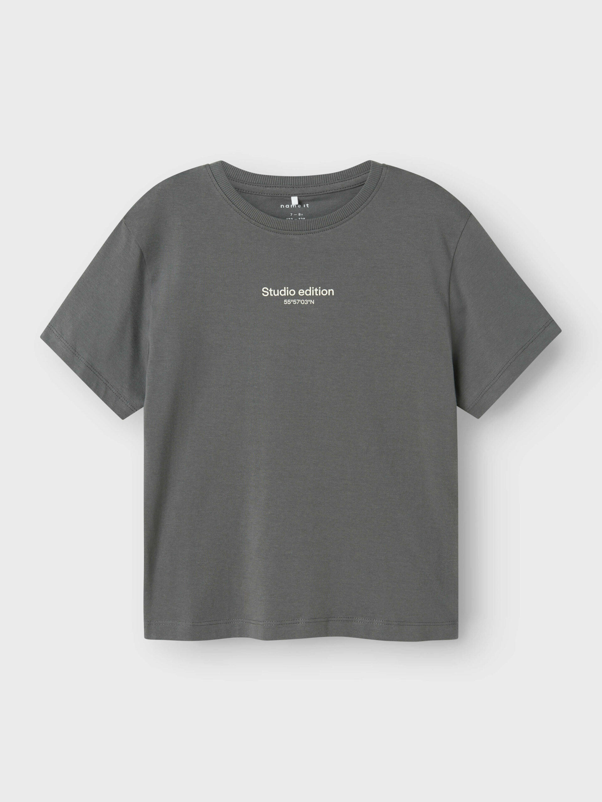 Brody t-shirten fra Name It i farven Lava Smoke er en blød og stilfuld basis-t-shirt til drenge.